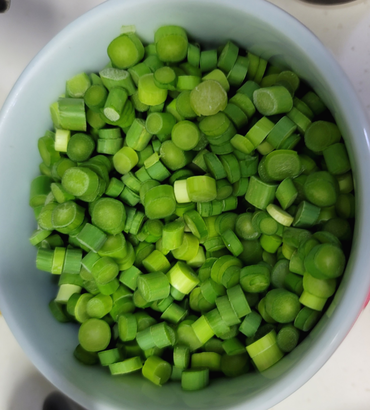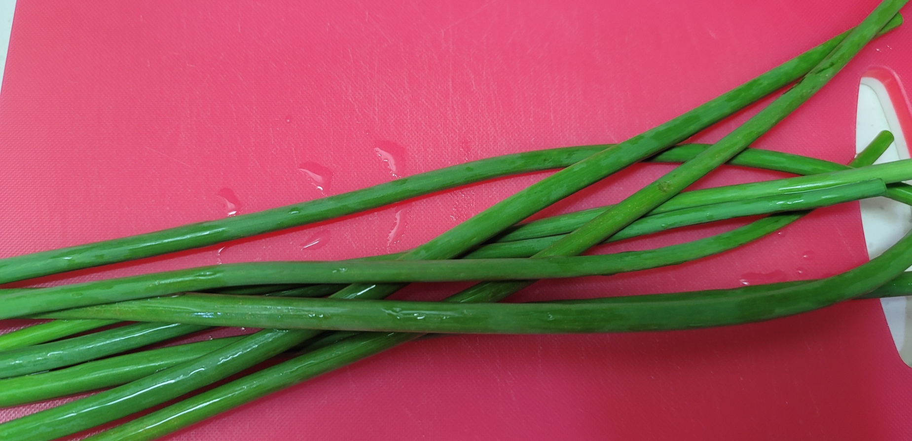오늘은 쿠팡 프레쉬가 장을 봐줬다. 노브랜드는 마늘쫑을 안 판다. 뭔가 레시피를 잘못 골랐나는 싶은데, 오늘도 자취남 요리의 필수 덕목인 '용기'로 시작해본다. 승우아빠가 말하기를 일단 잘게 썰라고 한다. 신명 나게 썰어본다.